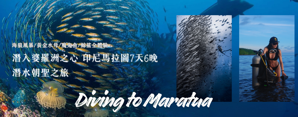 馬拉圖島是達拉灣群島 (Derawan Archipelago) 的一部分,是印度尼西亞婆羅洲的一處世界級海洋秘境。它被譽為「潛水員的終極朝聖地」,以其原始、豐富且令人震撼的水下生態而聞名於世。今日到達貝勞機場後,由渡假村專車接送至碼頭,搭乘快艇前往馬拉圖藍海渡假村 (Maratua Blue Resort) 辦理入住手續。今日可在渡假村前的超長白沙灘漫步,稍作休息後 ,下午可進行Check Dive。